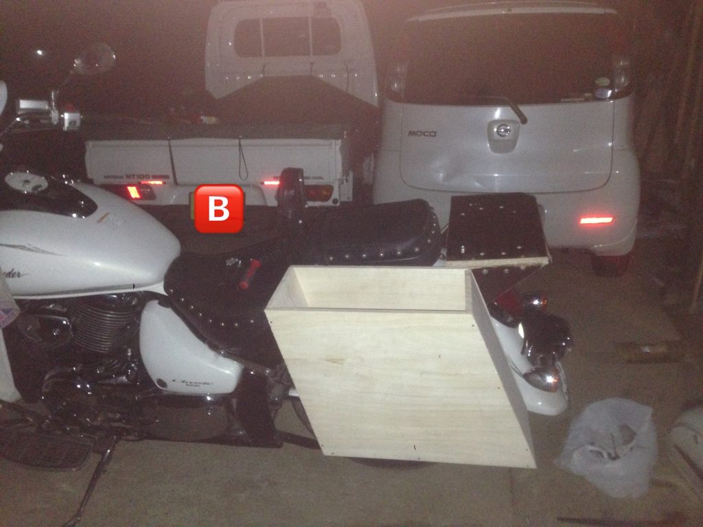 木製サイドボックス。木製トップケース。木製ロアフェアリング等々作っていたところに
