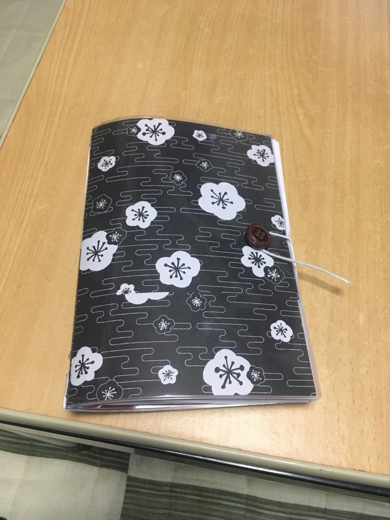 ダイソーの文庫本クリアカバーにお気に入りの折り紙を入れただけのかんたんアレンジ。