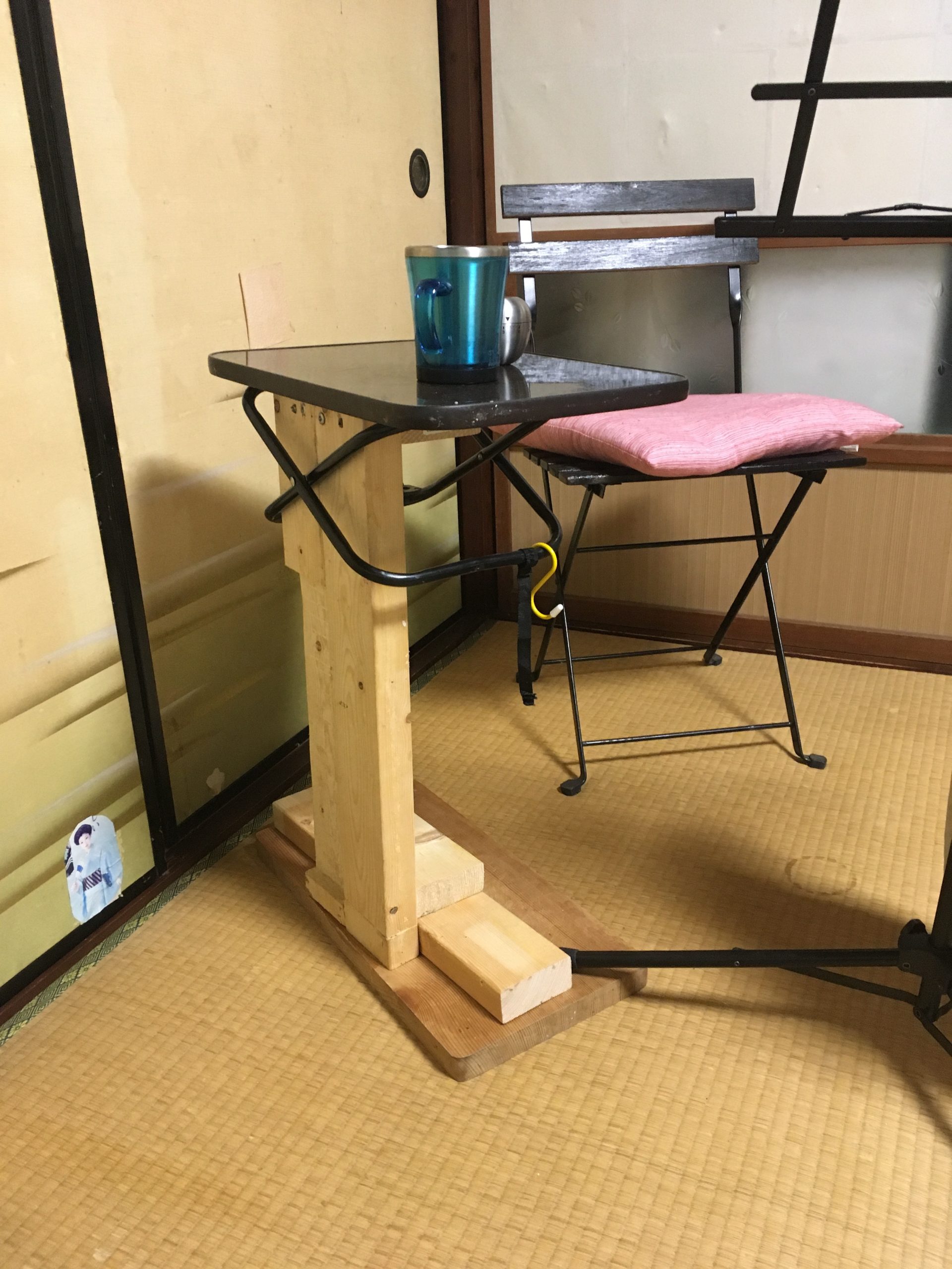 そして端材置き場にあった大きめの木材何個かと昔手に入れたサイドテーブルをドッキング。