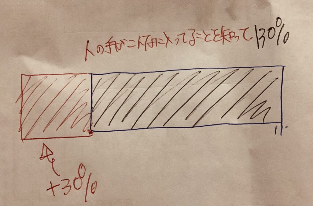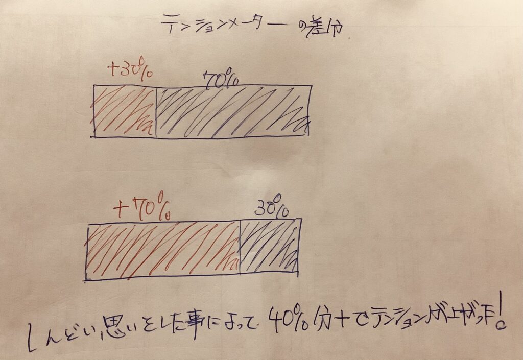 実際は苦労をしてテンション下がってたので、70%分の上昇