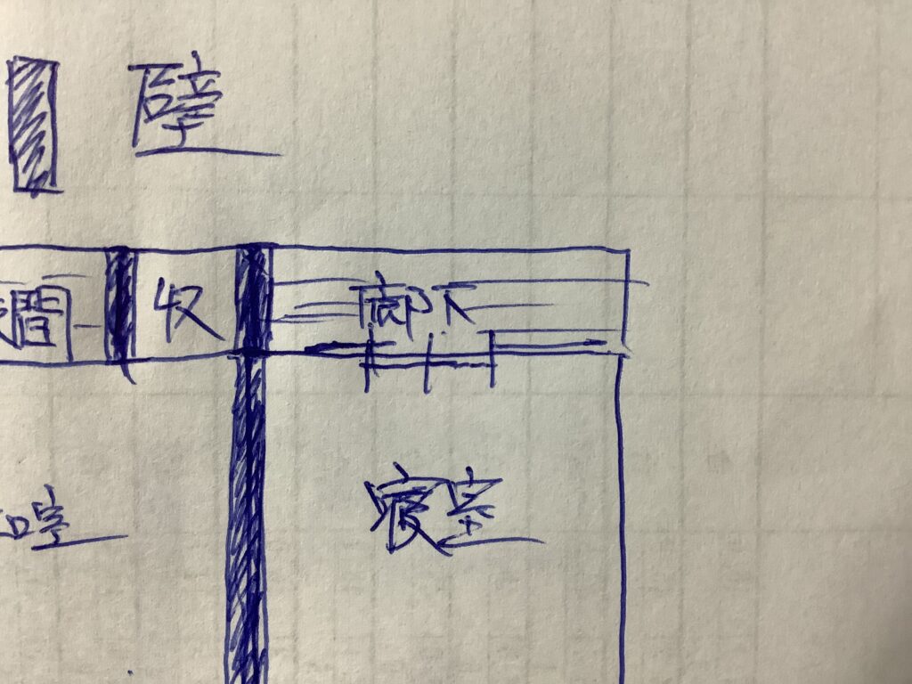 寝室からこの廊下へ しかしその後がない。