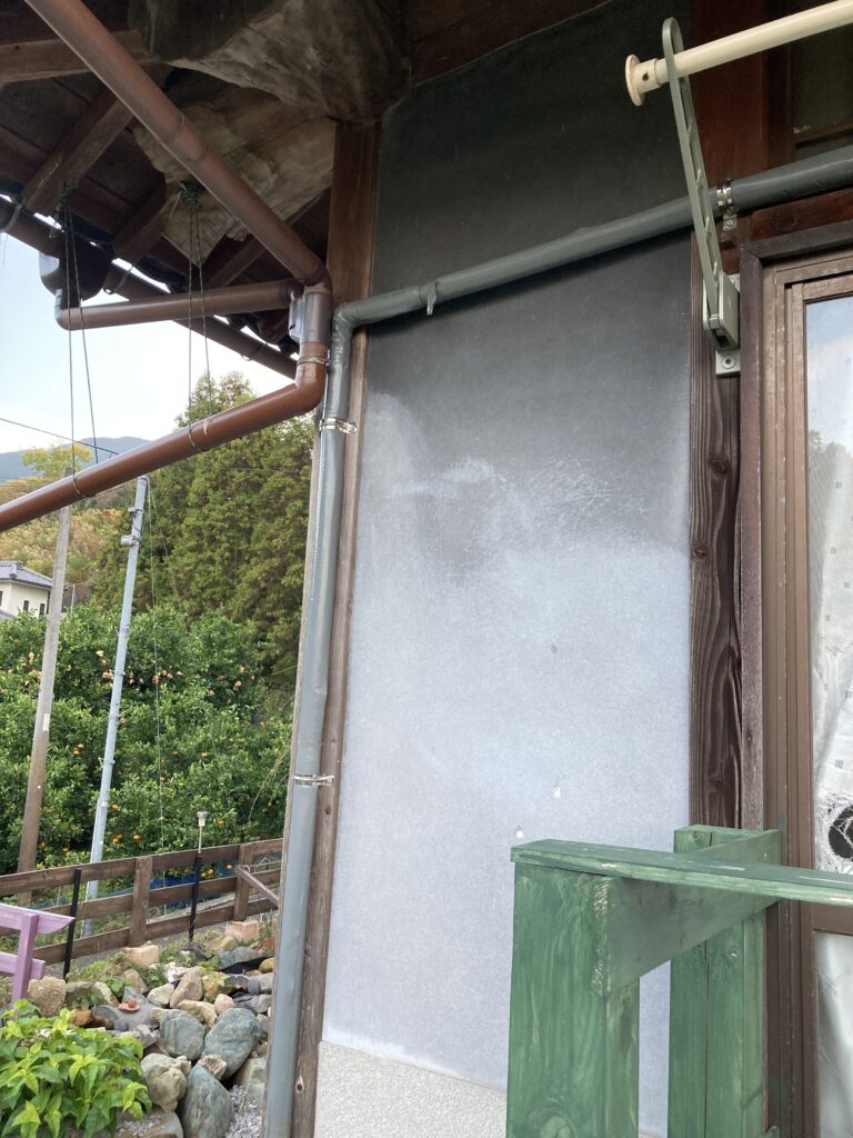外に映えてる水道管から分岐して奥まで伸ばすのに9mあるわけです。