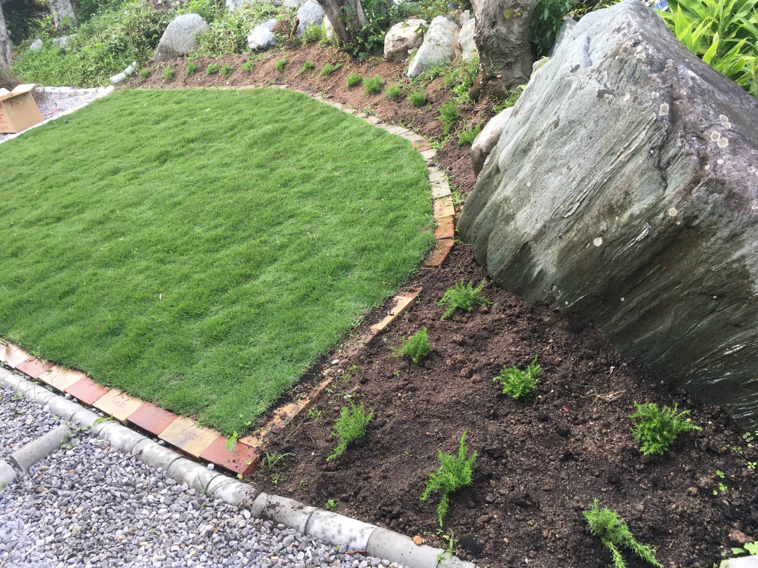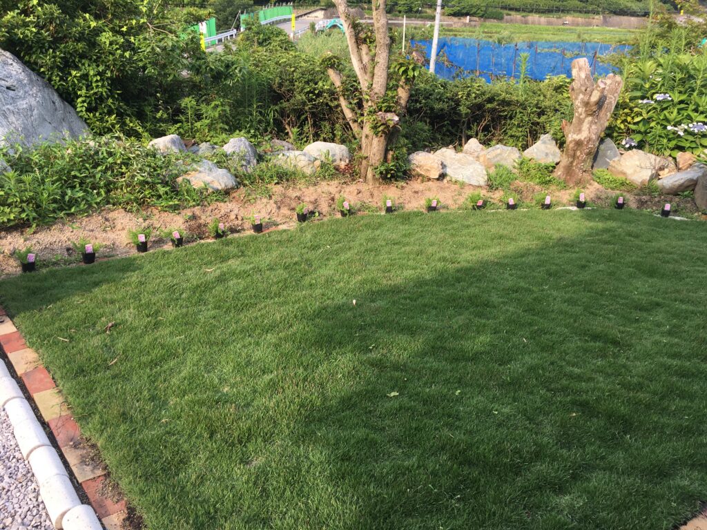 そして最近植えた芝生の外側の地面に雑草が生えてきて気になってきました。