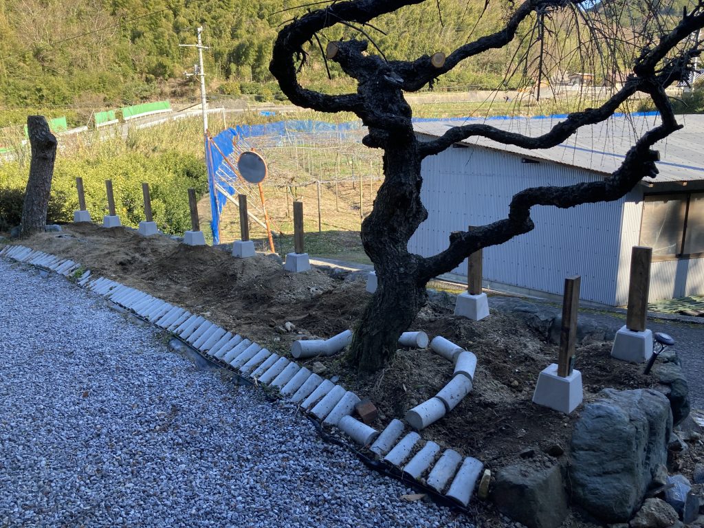 椿の木は抜根。梅の木も1本抜根しました。