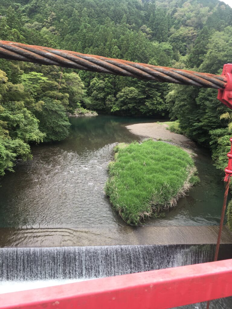 橋の真ん中まで行くと滝が現れます。