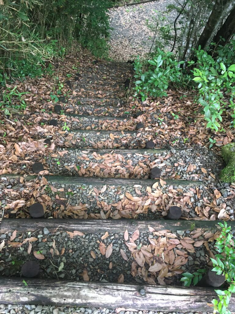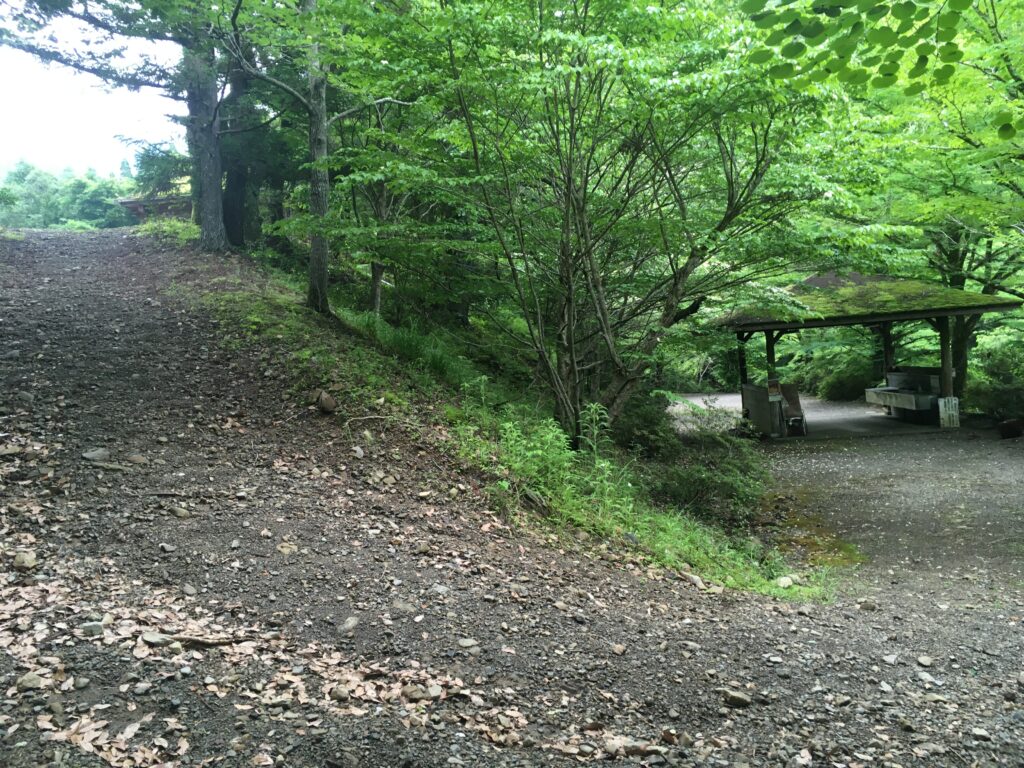 車で降りれるようです。先ほどの階段は、キャンプサイトからトイレに行くために使う感じでしょうね。