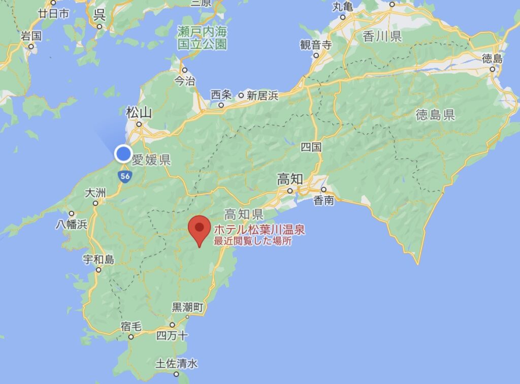 場所はこちら。高知県の左寄りのここ。