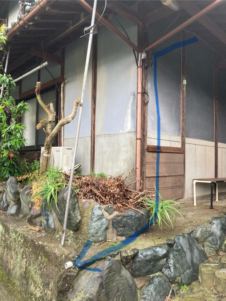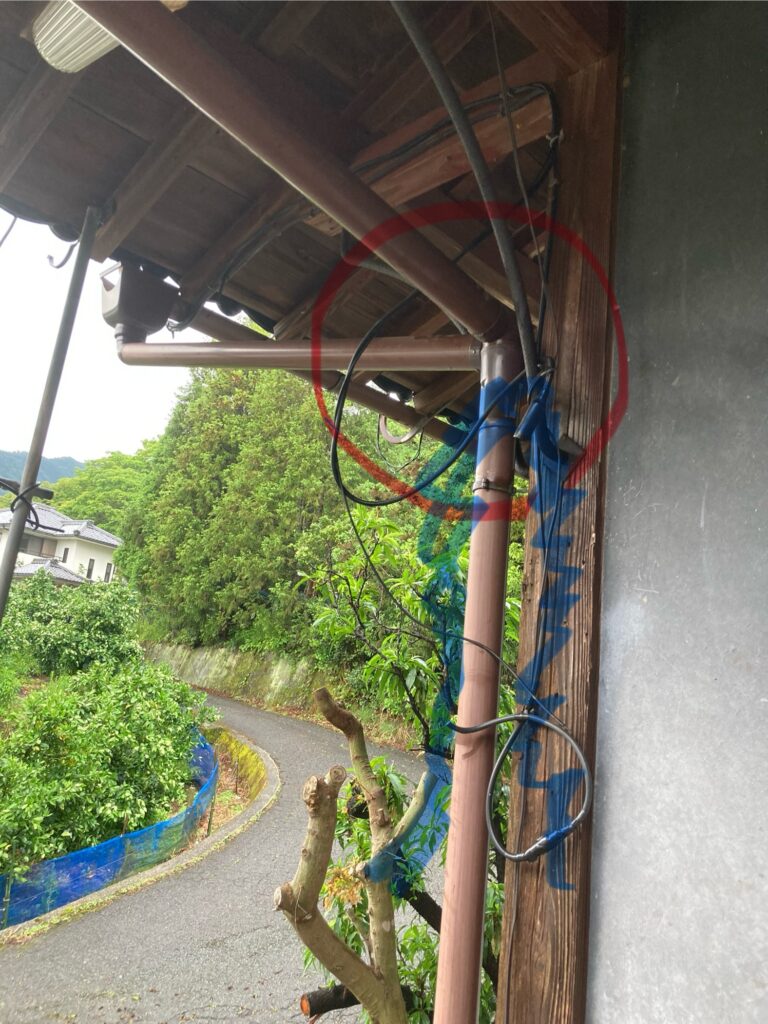 家に着いたところで雨樋から水が溢れていて家の柱が水びたしになっているではありませんか!