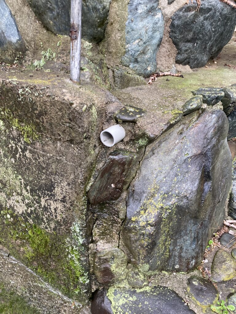 おそらくここから出てくるであろう穴。結果的にはこの奥の方で葉っぱやら苔やら詰まってました。