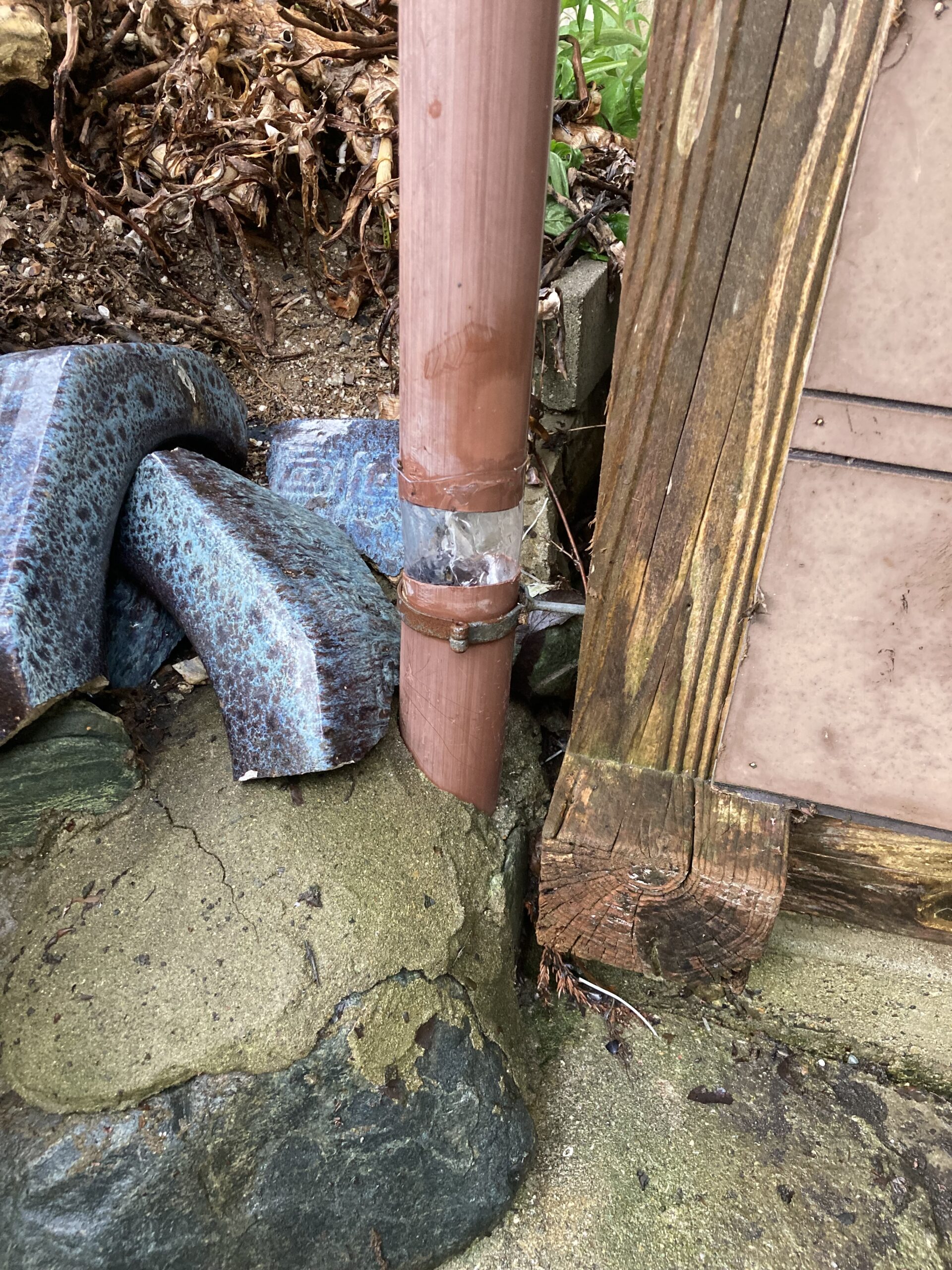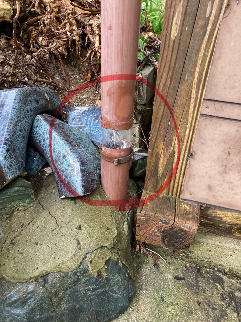 この樋の繋ぎ目からあふれんばかりの雨水が、いやあふれてたんですけどもね。