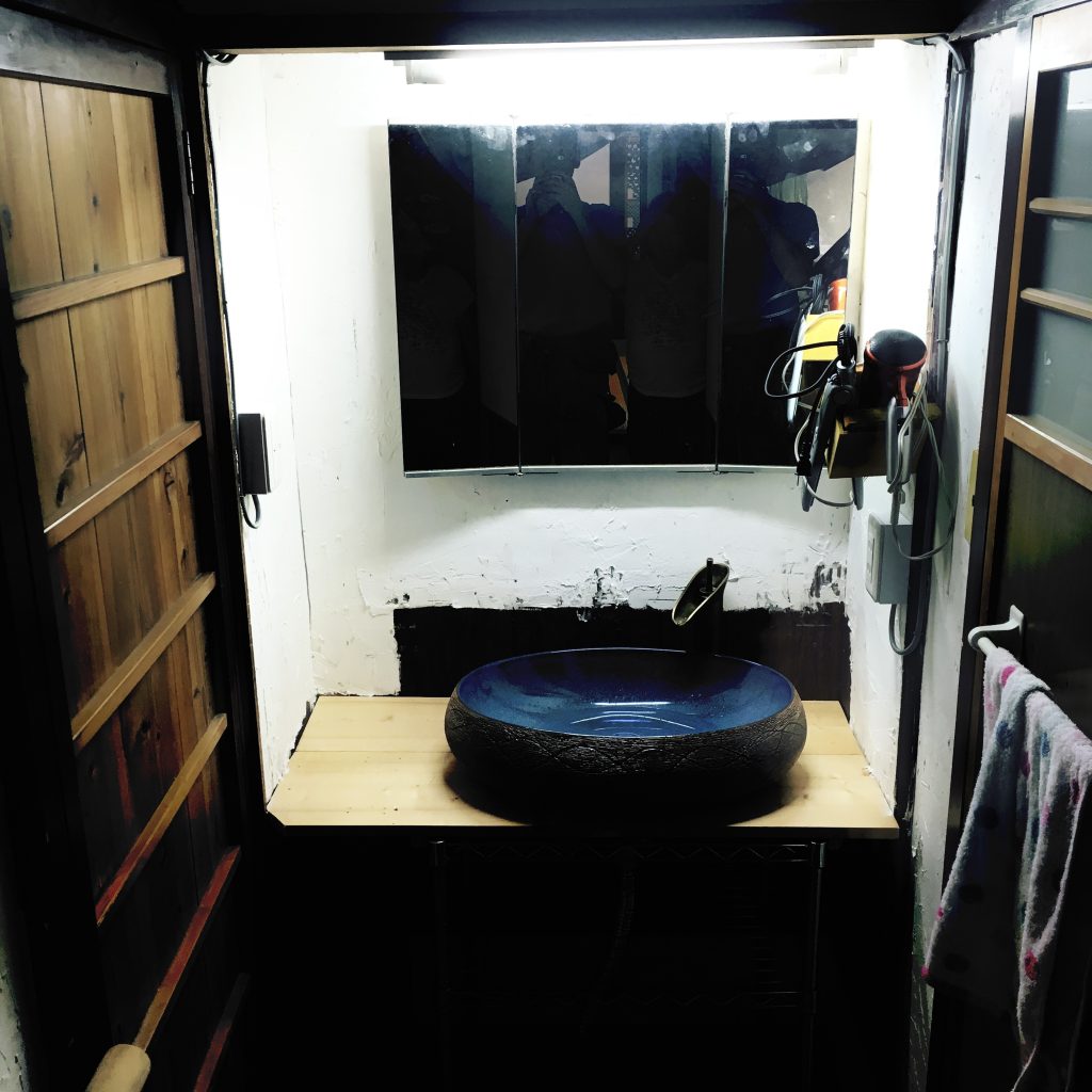 元の洗面台を大人2人でえっこら外して見ると床がなくて建物の基礎まで見えてたんですよ。