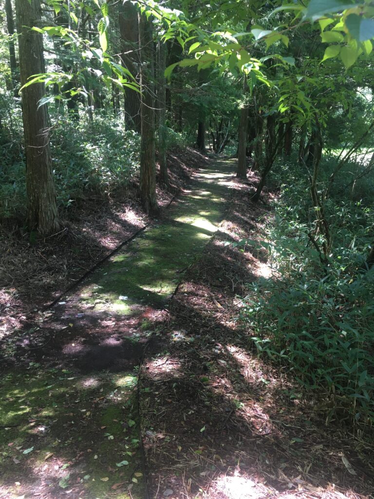 遊歩道に苔が生えていてしっとりとした踏み心地。新しい感触でした。