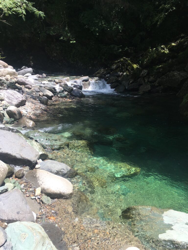 面河渓の近くの川で楽しく遊んだ