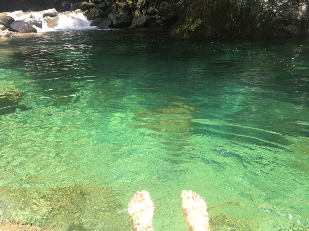 水の色は緑色。深さによって色合いが濃くなっていくのがとてもいい!
