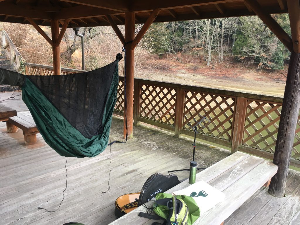ハンモック張らせてもらってギターして遊んでましたよ。