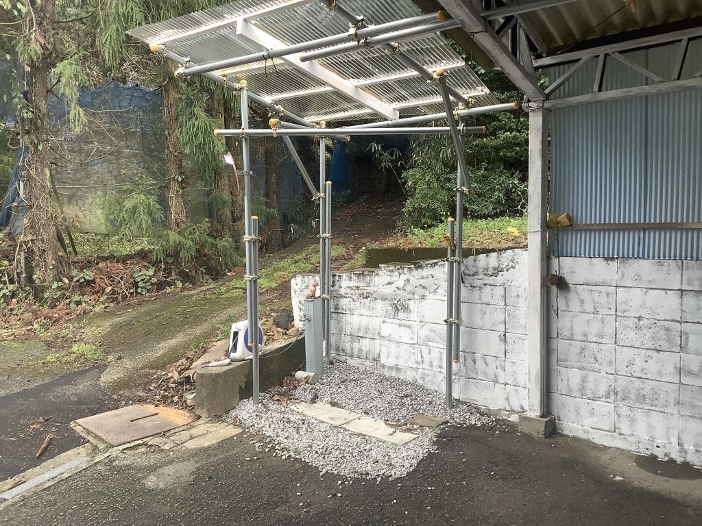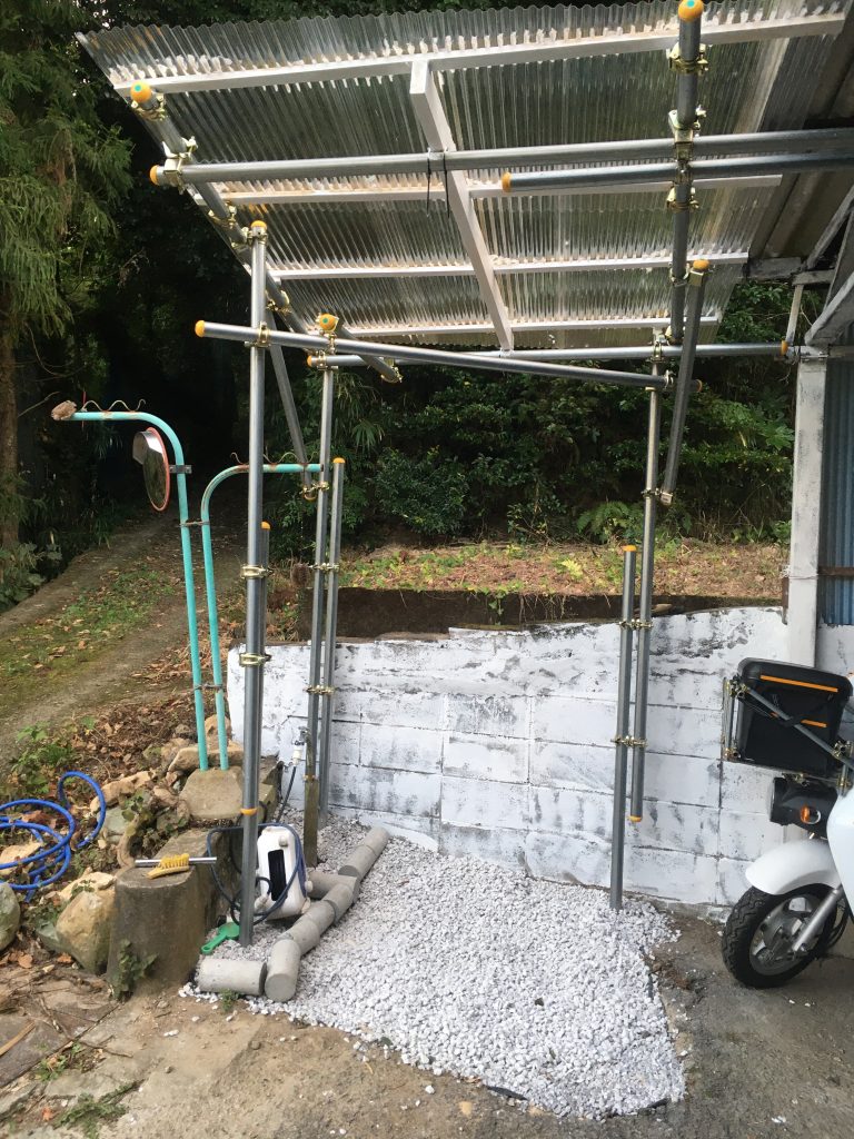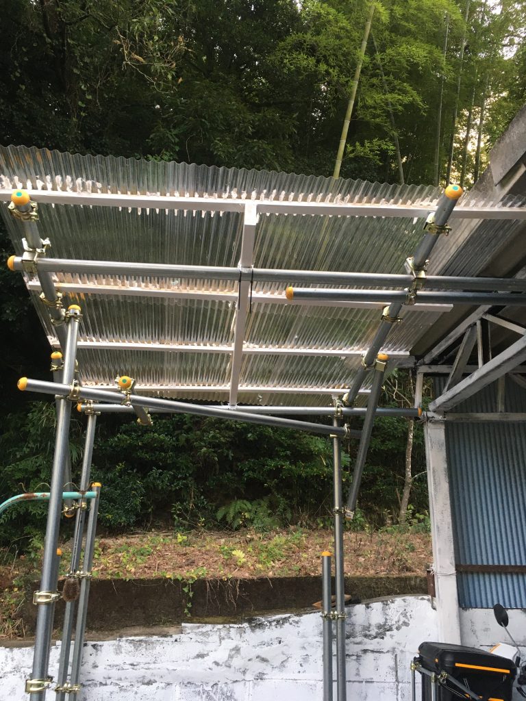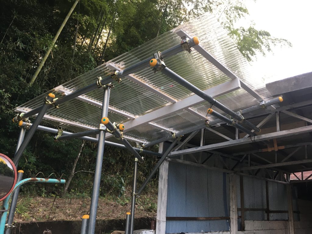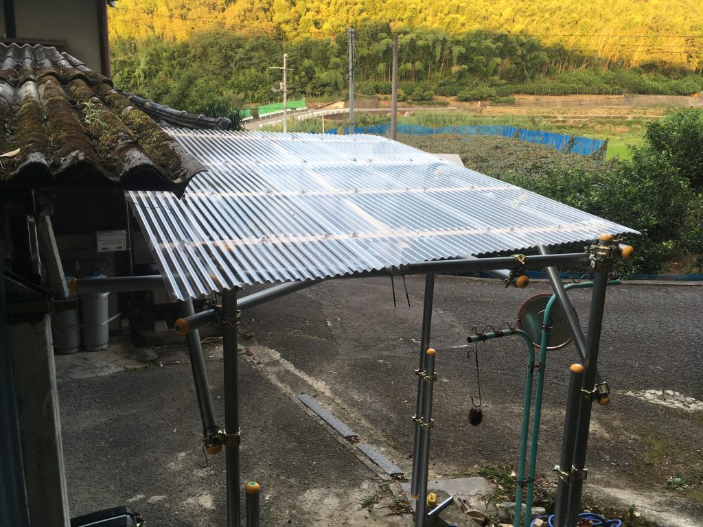 縦横に木を這わしてからポリカ波板をビスビスッと留めて完成。