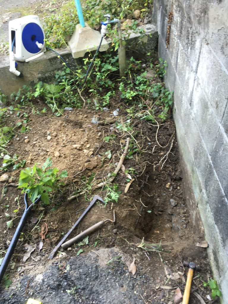 掘ってる途中で立水栓に繋がってる水道管を発見。