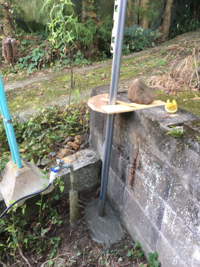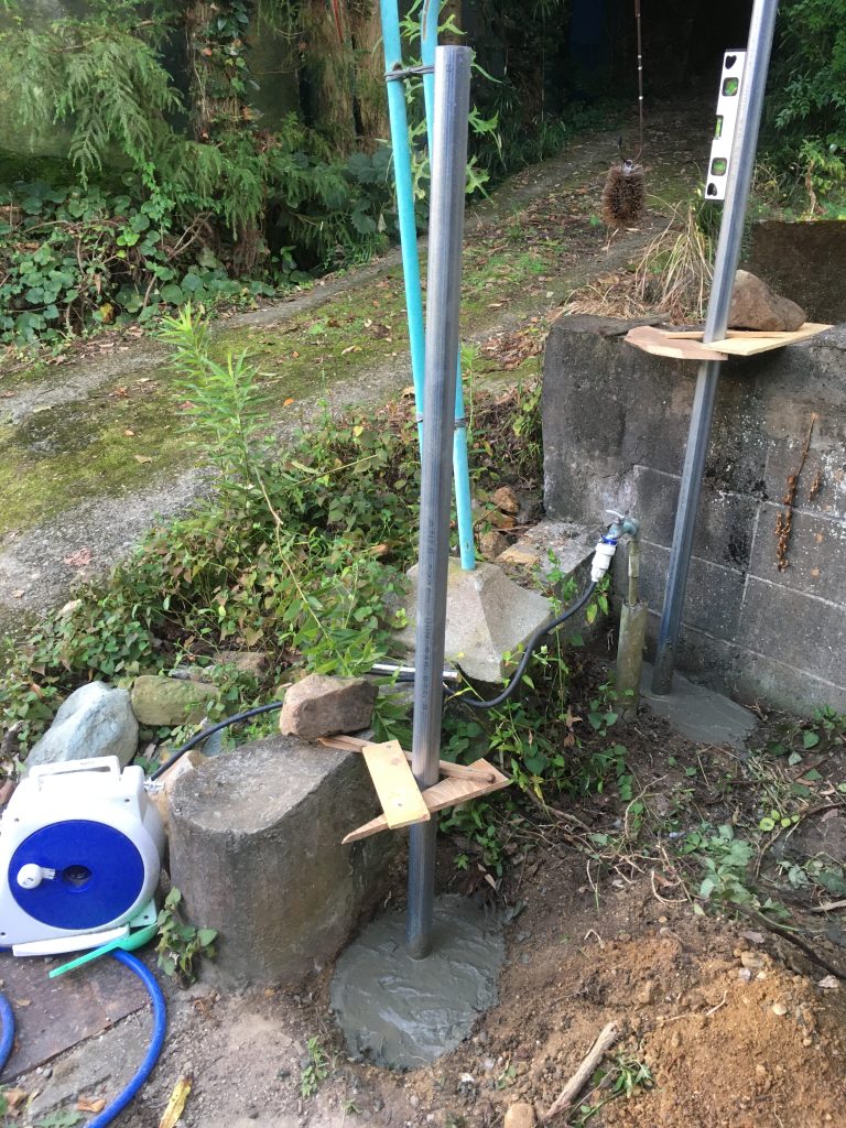 ほんでもって単艦パイプを持ってきまして柱を立てています。
