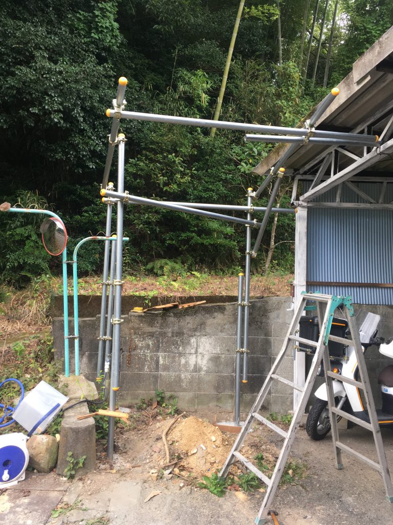 タカタカっと単管パイプを繋いでそれっぽくしまして
